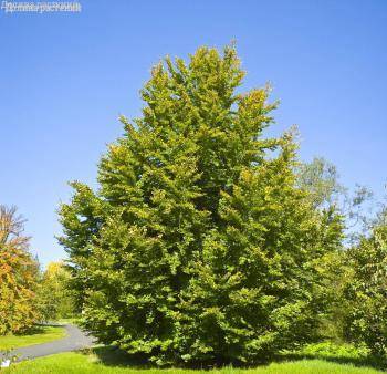 Бук европейский – листопадное дерево высотой до 25 м, с сильными ветвями. Это одно из самых красивых деревьев с широкой округлой кроной. На открытом пространстве он достигает в высоту и ширину 25 м. Кора гладкая, пепельно-серая. Листья зеленые, блестящие, 3-12 см длиной, осенью желтые или красно-коричневые.