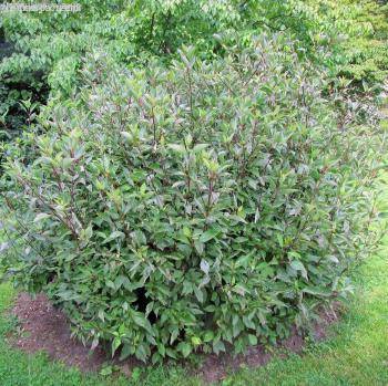 Дерен белый Кессельринги - привлекательный листопадный кустарник максимальной высотой и диаметром до 3-х метров. Форма кроны – плотная, раскидистая. Длинноватые, прутьевидные побеги черно-красного или же пурпурно-фиолетового колера устремлены вверх. Благодаря своему необычному цвету они довольно красиво выглядят на протяжении всего вегетативного сезона, делая куст ещё привлекательнее. Листья яйцевидные, овально-вытянутые, зеленые с красно-коричневым оттенком, снизу сизовато-белые, несколько морщинистые, до 12 см длинной. Осенью окрашиваются в фиолетово-красный цвет. Кустарник имеет возможность цвести 2 раза в год. Цветки небольшие, собранные в бессчетные щитковидные соцветия до 5 см диаметром, белоснежного или же кремового окраса. Растение отлично переносит как санитарную, так и формировочную стрижку. Довольно колоритно выглядят живы изгороди, сформированные из белого дерна. Кустарник хорошо приспосабливается к городским условиям, а также его используют в украшении жилых массивов. Великолепно смотрится в группе с другими растениями, в том числе с хвойными пародами. Дерен высаживают под кронами деревьев для создания нижнего яруса. Кроме того, яркие черно-красные побеги в зимний период выглядят удивительно контрастными, что дает нам возможность применять растение для дизайна всесезонных декораций.