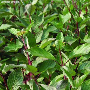 Дерен белый Сибирика Вариегата - листопадный кустарник высотой около 1,5 метров и диаметром 2 метров с раскидистой кроной. Побеги ярко-красные, особенно яркие ранней весной и поздней осенью. Наиболее ярко окрашена сторона побегов, освещенная солнцем. Листья крупные, плоские, темно-зеленые с кремовым кантом по краю, а также пятнами и полосками. Издали — светлое пятно. Осенью окрашиваются в фиолетово — пурпурные или красные тона, кайма по краю сохраняется. Цветки кремово-зеленоватые, собраны в выпуклые щитки, ароматные. Плоды, созревая, становятся сине-голубыми с восковым налетом. Зимостойкость высокая. Засухоустойчив. Эффектен в контрастных древесно-кустарниковых группах, а также в композициях с хвойными, спиреями, папоротниками, барбарисами. Используется в одиночных и групповых посадках, кустарниковых миксбордерах, для создания живых изгородей. Применяется для создания сезонных композиций. Идеален для малых по площади садов.