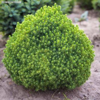 Ель канадская Альберта Глобе – естественная мутация ели канадской. Сорт был найден садовником Ц. Штренгом в г. Боскоп (Нидерланды). Представляет собой вечнозеленый кустарник 0,7-1 м в высоту и 1 м в диаметре. Крона плотная, шаровидная. Молодые побеги короткие, тонкие, светло-коричневые, расположены густо в радиальном порядке. Форма медленнорастущая. Годовой прирост 10 см в высоту и 2-4 см в ширину. В 10 лет достигает 0,4 м в диаметре. Имеет красивую ровную и симметричную крону, поэтому не нуждается в обрезке. Иногда могут возникать более длинные побеги – их необходимо удалять. Применяется также санитарная обрезка.