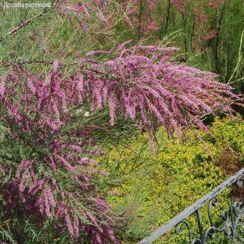 Гребенщик ветвистый – очень красивое элегантное невысокое дерево 1,5-2 метра с тонкими длинными зелеными листьями, которые к зиме опадают вместе с веточками. Цветки мелкие, ярко-розовые, собраны в кисти более полуметра длиной. Их аромат привлекает пчел и бабочек. Цветение длится с конца июня до августа. Плоды в виде пирамидальной коробочки содержит в среднем 17 семян. Выдерживает морозы от -23°C до -18°C.