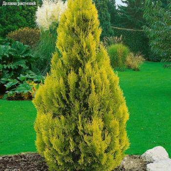 Саженец в контейнере P9. Высота саженца 10-20 см Туя Западная Голден Смарагд (Джанед Голд) - лучшая золотистая форма популярного сорта Смарагд. Хвоя золотисто-жёлтая в течение всего года, крона почти идеальная коническая. Для посадки туи выбирают солнечные места. Почва подходит легкая - торфянистые, сухие и глинистые супеси. При высадке в более тяжелый грунт на дне посадочной ямы необходим дренажный слой не менее 15 см толщиной.
