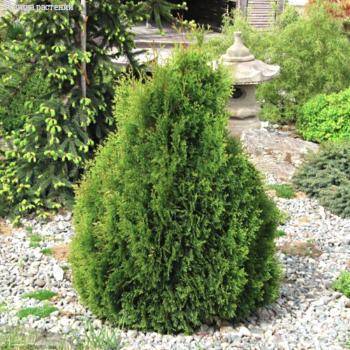 Туя западная Жеска – дерево до 3-5 м высотой. Форма кроны в молодости пирамидальная, с возрастом более рыхлая, яйцевидная. Хвоя расположена супротивно, чешуйчатая, прижатая к ветвям, до 4 мм длиной, тёмно-зелёная. Шишки мелкие, 8–12 мм длиной, яйцевидные, из 3–5 пар раскрывающихся чешуй, сначала жёлто-зелёные, при созревании светло-коричневые, созревают в год цветения. Плодоносит с 10 лет. В условиях Подмосковья семена созревают в октябре. Туя влаголюбива, переносит высокий уровень грунтовых вод, в засушливое время требует полива, но с возрастом становится засухоустойчивой. Хорошо переносит пересадку. Не рекомендуются посадки в местах с сильными, иссушающими воздух и почву ветрами. При сильных снегопадах дугообразно изгибается, требуется выпрямление с помощью подпорок.