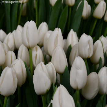 Тюльпан Сноуборд — чисто-белый с гладкими лепестками, высота 45см, бутон 6–7см, минималистичный и утончённый.