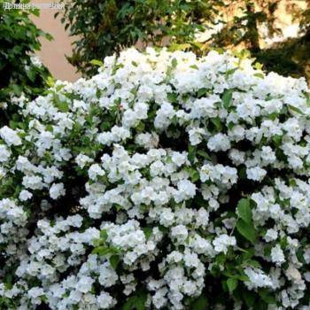 Чубушник Виргинал – декоративный листопадный прямостоячий кустарник высотой 2-3 м с широкой кроной, бурыми побегами и крепкими ветвями. Листья супротивные, черешчатые, широкоовальные, с заостренной вершиной и крупнозубчатым краем, весной и летом темно-зеленые, а осенью – желтые или красно-бурые. Цветет обильно в конце июня-июле на протяжении 3-4 недель. Цветки крупные, душистые, махровые, чисто-белые, собраны в рыхлые кисти по 9-17 штук. Темп роста средний.